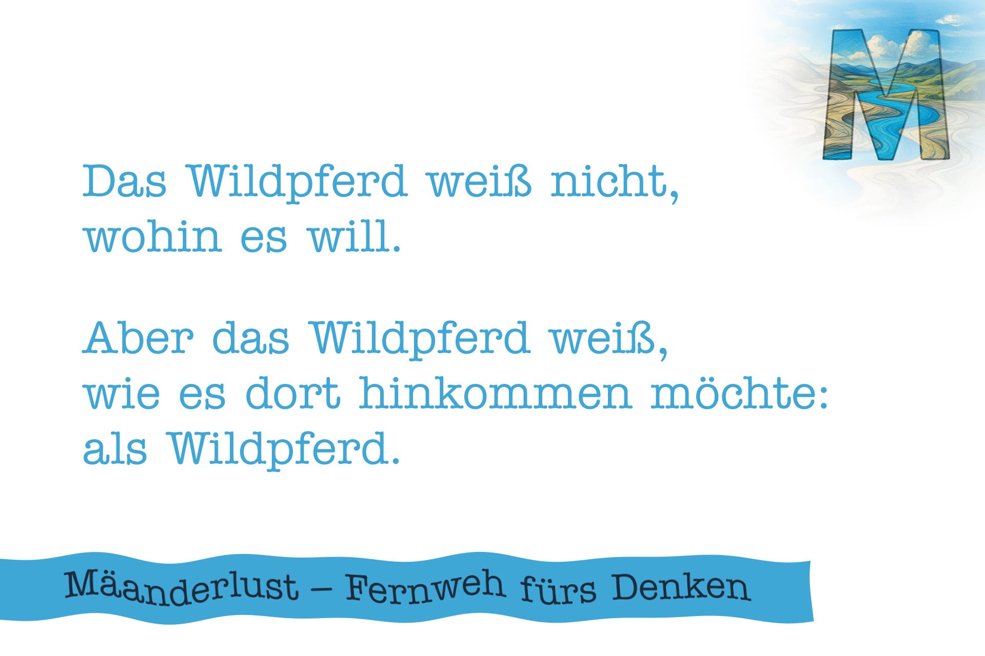 Das Wildpferd weiß nicht, wohin es will. Aber das Wildpferd weiß, wie es dort hinkommen möchte: als Wildpferd.